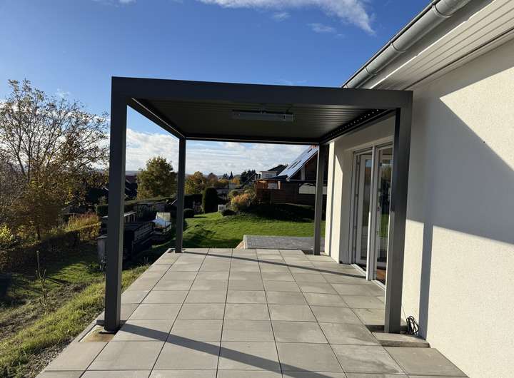 -Terrasse mit luxuriöser Pergola mit LED-Beleuchtung (ferngesteuert per APP), Sonnenschutz und Wärmelampe