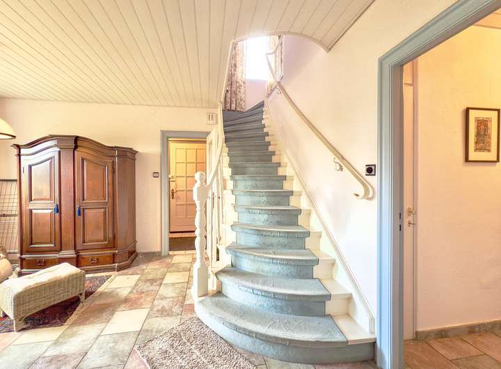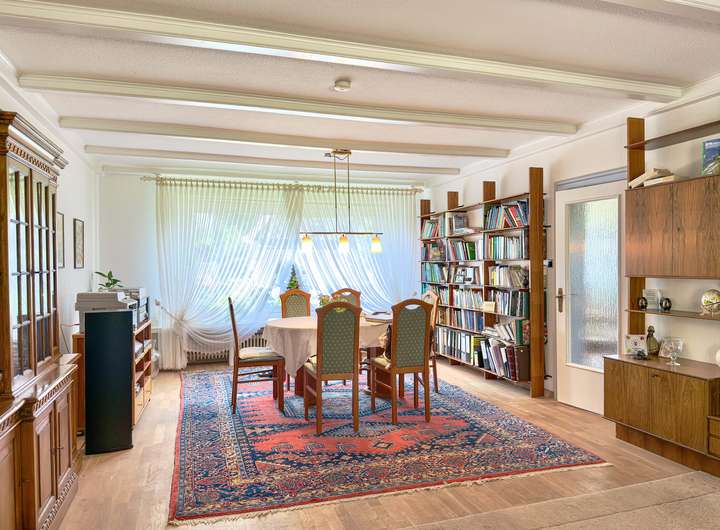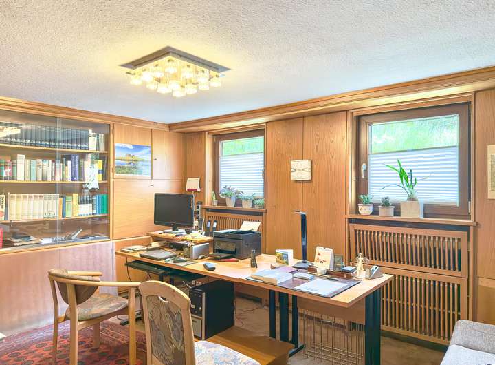 In ruhiger Wohnlage und mit schönem Ausblick präsentiert sich dieses freistehende Einfamilienhaus aus dem Jahr 1954 mit einem wohnlich ausgebauten Anbau von 1985 und einem 2012 erneuerten Dach. Auf einem ca. 619 m² großen Grundstück gelegen, bietet das Haus ca. 100 m² Wohnfläche sowie ca. 118 m² Nutzfläche – ideal für Paare oder kleine Familien, die naturnah wohnen und dennoch nicht auf Komfort verzichten möchten. Das massiv gebaute Haus mit klassischem Mansarddach überzeugt durch eine funktionale Raumaufteilung mit insgesamt drei Zimmern. Im Erdgeschoss stehen ein großzügiger Wohn- und Essbereich, eine Einbauküche und ein Gäste-WC zur Verfügung, das Obergeschoss beherbergt ein Vollbad sowie ein Zimmer mit Zugang zum Balkon. Der Anbau ergänzt das Raumangebot im Erdgeschoss um einen gemütlichen, lichtdurchfluteten Raum mit Kamin und Blick in den Garten – perfekt als Rückzugsort oder zusätzlicher Wohnbereich. Im Jahr 2020 wurden in sämtliche Fenster doppelt verglaste Scheiben eingesetzt. Ergänzt wird die Ausstattung durch manuelle Sichtrollos, Parkett- und Fliesenböden sowie einen Glasfaseranschluss. Das Haus ist bis auf den Anbau voll unterkellert, der Keller teils wohnlich ausgebaut (Deckenhöhe ca. 2,18 m) und bietet somit praktische Zusatzfläche. Ein weiteres Plus sind zwei Stellplätze in der Garage mit modernisierter Elektronik sowie zusätzliche Parkmöglichkeiten auf dem Grundstück. Das Garagendach wurde ebenfalls bereits erneuert. Die ruhige Hanglage in einer gepflegten Nachbarschaft bietet ein hohes Maß an Lebensqualität und einen schönen Ausblick ins Grüne. Wir freuen uns auf Ihre Anfragen!