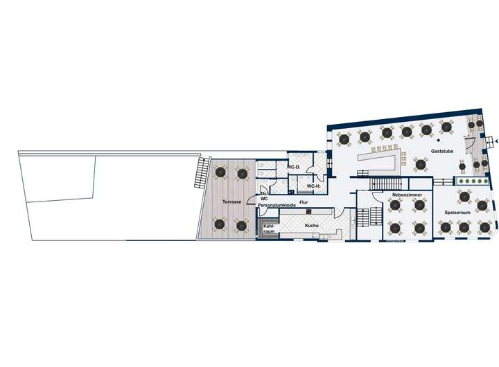 - Gaststätte 195 m² + Terrasse 38,3 m²