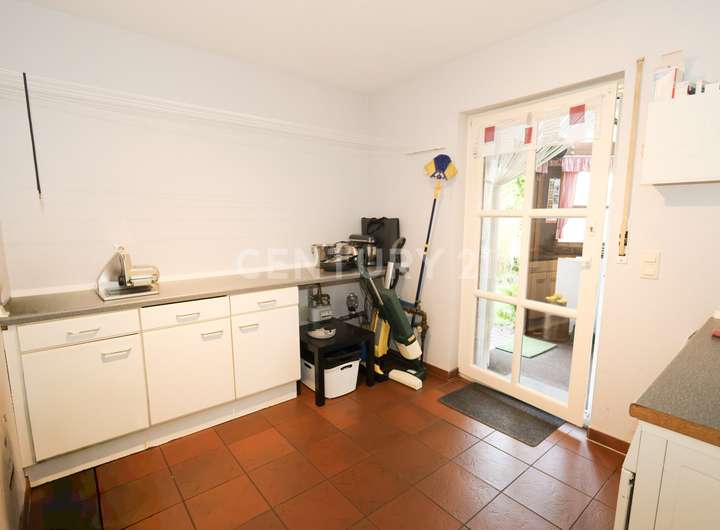 - Hauswirtschaftsraum mit Anschlüssen für Waschmaschine und Trockner und Zugang zur überdachten Terrasse