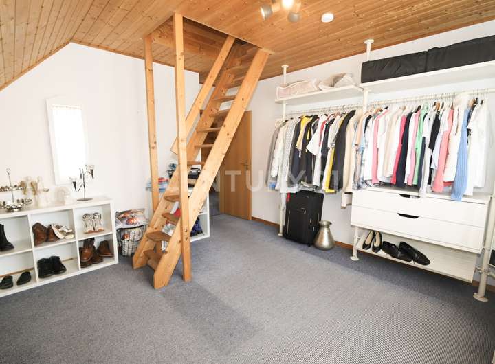 - über eine offene Echtholztreppe gelangt man ins Dachgeschoss