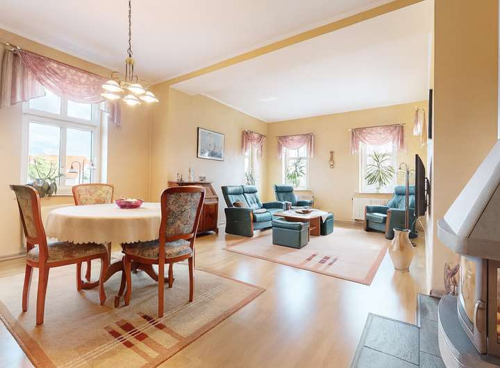 Willkommen in Joachimsthal, wo dieses prächtige, in Massivbauweise errichtete Zweifamilienhaus aus dem Jahr 1890 auf Sie wartet. Mit einer Wohnfläche von 230 m² und einem weitläufigen Grundstück von 3.800 m² bietet dieses historische Anwesen eine einzigartige Gelegenheit, in einem Stück Geschichte zu leben. Es ist eine Immobilie, die über zwei Wohneinheiten mit jeweils vier Zimmern verfügt und die Möglichkeit offen hält, diese vielfältig zu nutzen, entweder als Mehrgenerationenhaus oder das Arbeiten und Wohnen unter einem Dach zu ermöglichen. Die Erdgeschosswohnung ist zu diesem Zeitpunkt für eine Jahresnettokaltmiete von 11.750 € vermietet. Das Haus wurde im Jahr 1998 einer umfassenden Kernsanierung unterzogen. Bei diesen Arbeiten sind die Fassade sowie die Elektrik und die Heizungsanlage inklusive Heizkörper vollständig erneuert worden. Die dreifach isolierten Kunststofffenster mit innenliegenden Sprossen wurden erst vor einem Jahr eingebaut. Das gesamte Haupthaus wird durch eine Weishaupt-Gas-Zentralheizung beheizt. Der voll ausgebaute Keller bietet zusätzlichen Raum und Flexibilität. Des Weiteren befindet sich auf dem Grundstück ein massives Nebengelass aus dem Baujahr 1890. Das Objekt verfügt über 66 m², ist teilunterkellert, hat eine Weishaupt-Gas-Zentralheizung von 2009 und ist für eine Jahresnettokaltmiete von 5.702 € vermietet. Um Ihnen einen realistischen Eindruck von diesem beeindruckenden Objekt zu vermitteln, steht eine 3D-Tour zur Verfügung. Tauchen Sie ein und lassen Sie sich von den zahlreichen Vorzügen und Annehmlichkeiten dieser Immobilie begeistern.