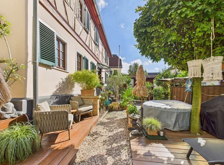 Ein weiteres besonderes Highlight ist der Außenbereich, mit dem unglaublich liebevoll angelegten Garten in perfekter Ausrichtung. Schaffen Sie sich und Ihrer Familie eine großzügige Oase der Ruhe, gepaart mit einer optimalen Verkehrsanbindung.