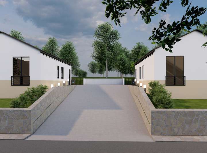 Jeder Bungalow liegt auf einem ca. 370 m² großen Grundstück und verfügt über eine sonnige Terrasse sowie einen privaten Gartenanteil – Ihr grünes Refugium zur Erholung.
