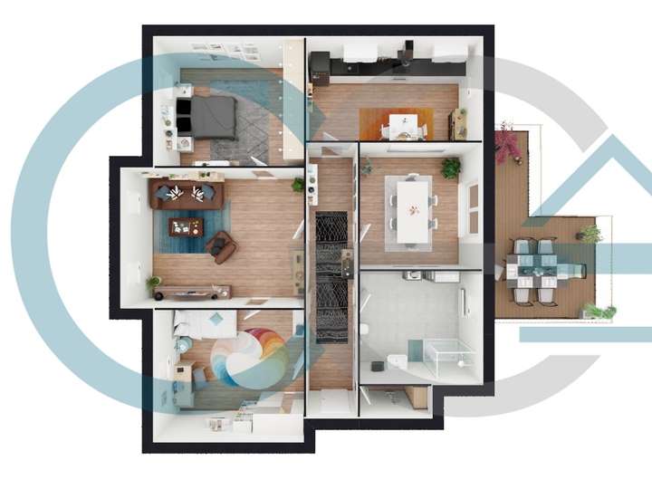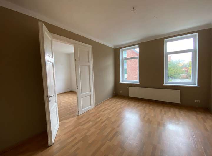 Die Wohnung erstreckt sich über 110 m² und verfügt über einen großzügigen Wohn- und Essbereich, drei weitere Schlafzimmer, ein Badezimmer sowie eine Küche. Die drei gut geschnittenen Schlafzimmer können flexibel, als als Schlaf-, Gäste- oder Arbeitszimmer genutzt werden. Die Küche bietet genügend Platz für eine schicke Küchenzeile und eine Essgruppe. Das Badezimmer ist mit einer Dusche und Fenstern ausgestattet.