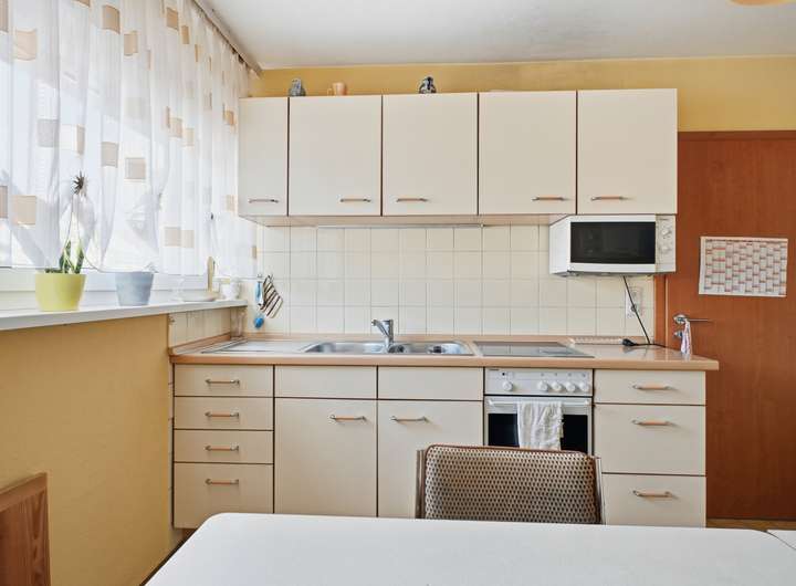 Einige Modernisierungen wurden bereits vorgenommen: Die Dacheindeckung wurde 1999 mit langlebigen Tonziegeln erneuert und auch die Fassade wurde vor einigen Jahren überarbeitet, inklusive Dämmung der Nordseite durch aufgebrachte Dämmplatten. Beheizt wird die Immobilie derzeit über eine ölbetriebene Warmluftheizung – ein Austausch zugunsten eines effizienteren Heizungssystems ist zu empfehlen und bietet gleichzeitig die Möglichkeit, zukünftige Energieeffizienz aktiv zu gestalten.