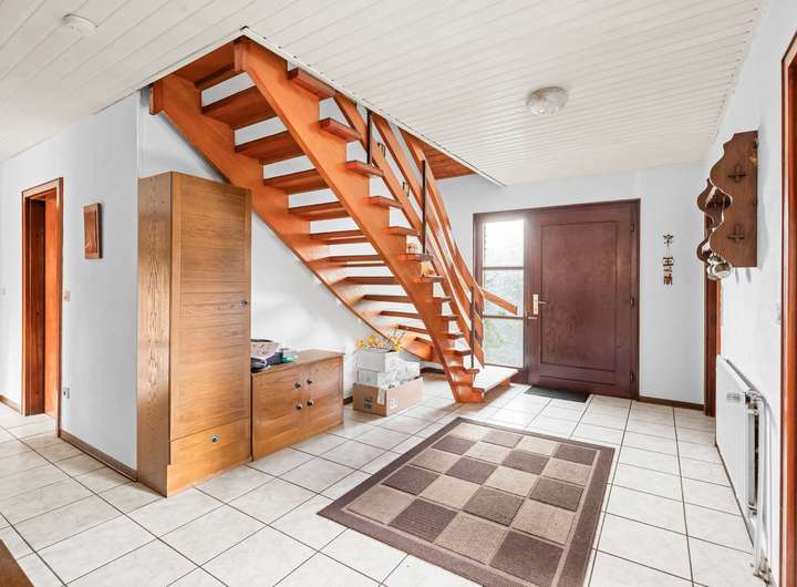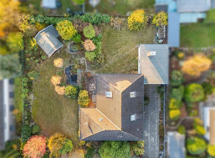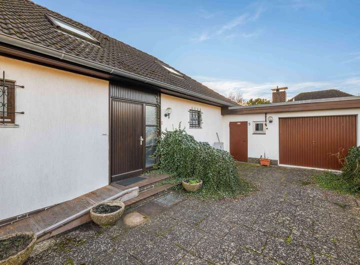 Schon beim Ankommen zeigt sich die angenehme Alltagstauglichkeit: Die ruhige Straße, die praktische Auffahrt direkt bis zur Haustür sowie Garage und Außenabstellraum (inklusive Gasheizung) sorgen für kurze Wege und viel Flexibilität.