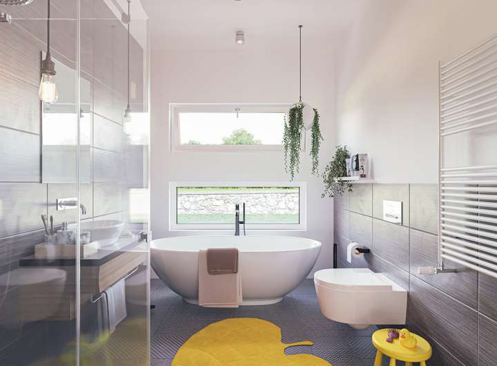 Die Ausstattung deines neuen Hauses umfasst zahlreiche Highlights, die deinen Lebensstil bereichern werden. Du erhältst modernste Fenster mit optimaler Wärmedämmung, hochwertige Innentüren und Böden, die deinem persönlichen Geschmack entsprechen. Die Badezimmer sind mit stilvollen Sanitäranlagen ausgestattet, die für Komfort und Eleganz sorgen. Darüber hinaus profitierst du von einer umfangreichen Grundausstattung, die alle notwendigen Materialien für den Innenausbau bereithält. Dein individuelles Zuhause wird somit nicht nur ästhetisch ansprechend, sondern auch funktional gestaltet. Mit LivingHaus hast du die Möglichkeit, dein Eigenheim genau nach deinen Vorstellungen zu gestalten und zu einem "Wie ich es will Fertighaus" zu machen.