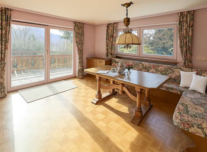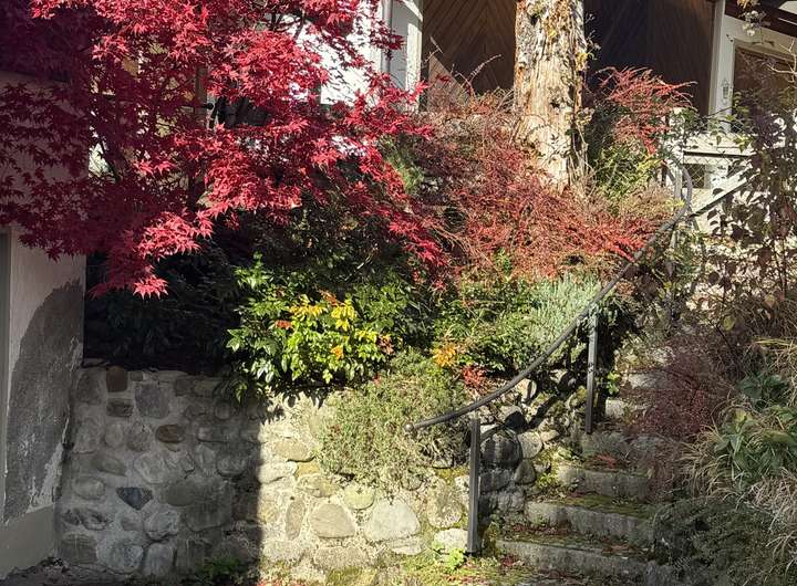 Ergänzt wird dieses Refugium durch einen wunderschönen, ruhigen, parkähnlichen und weitläufigen Garten. Ein wahres Unikat, das Herz und Seele berührt. Ebenso verfügt das Anwesen über eine eigene Hangbewaldung. Hier können Sie einfach viel Zeit draußen verbringen. Mit angenehmer Privatsphäre, viel Platz für Familienaktivitäten und sonnigen Liegewiesen, Freisitzen, Terrassen und Balkonen lädt diese 'Alpinresidenz' zum Entspannen mit Wohlfühlgarantie ein.