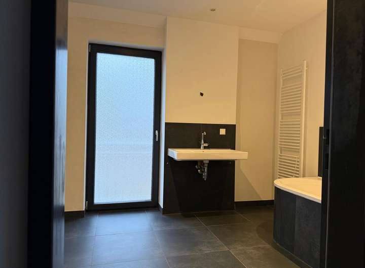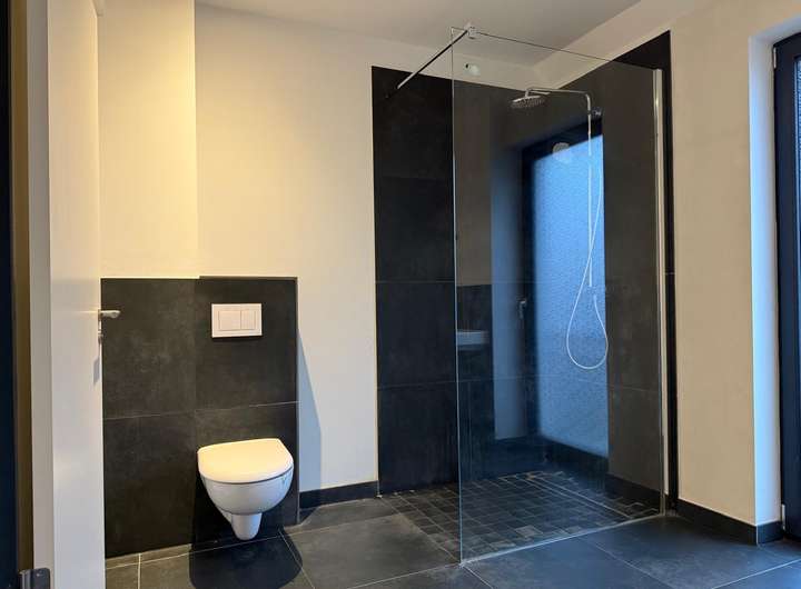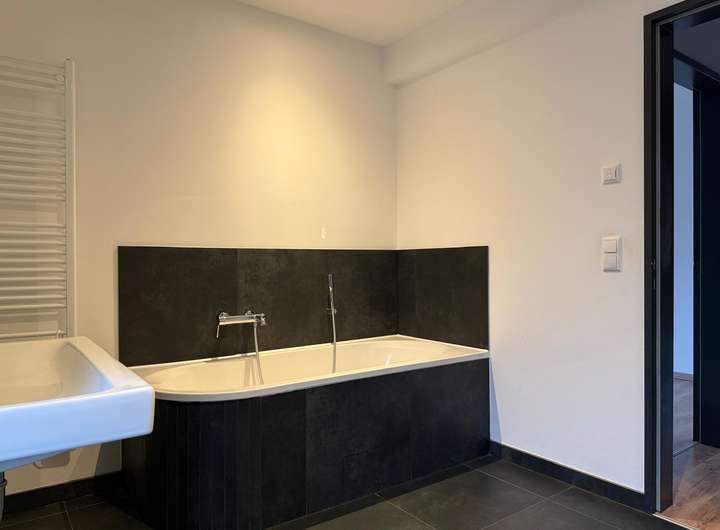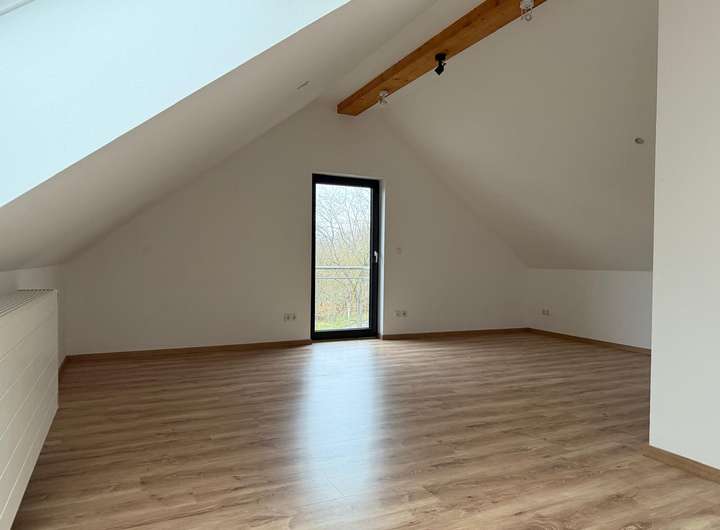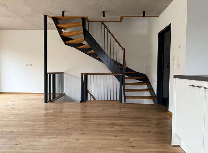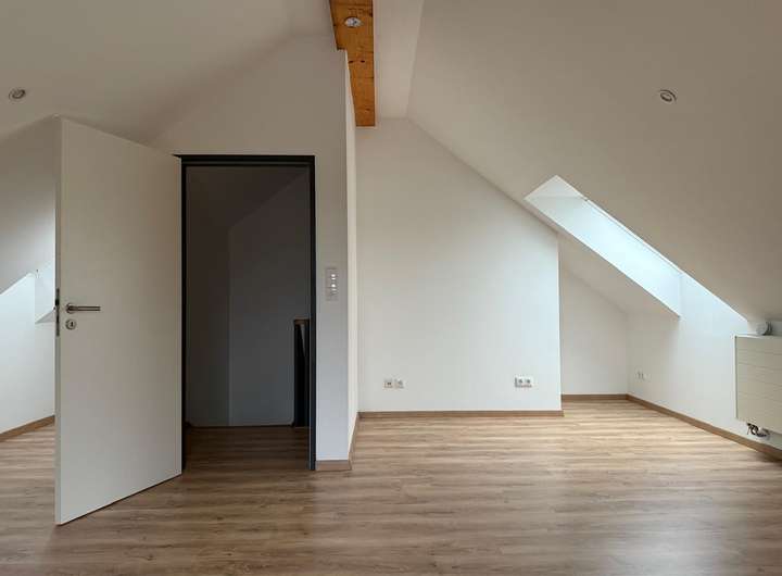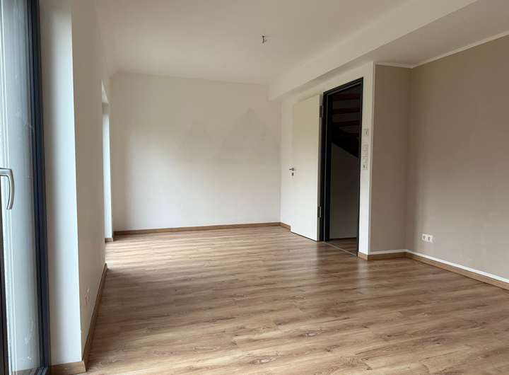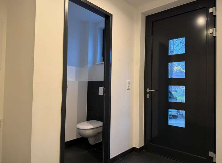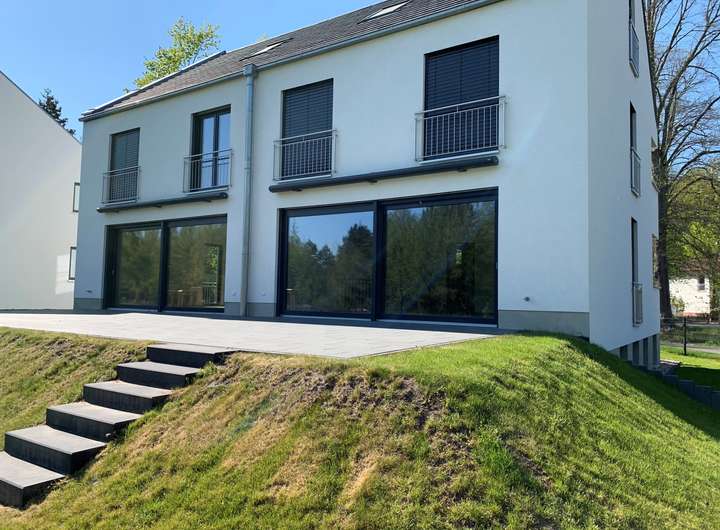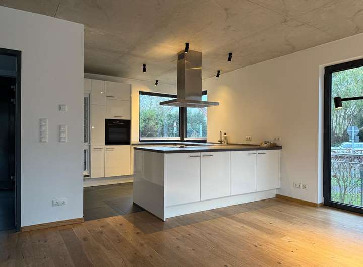 Das Haus ist im Erdgeschoss mit einem Gäste-WC und einer schönen Einbauküche mit Elektrogeräten ausgestattet. Über das Wohnzimmer gelangt man ohne Stufen auf die große Terrasse, die in Richtung Süd-Osten ausgerichtet ist. Ein offenes Treppenhaus im Wohnzimmer verbindet alle vier Etagen. Im Obergeschoss befindet sich ein schönes Vollbad mit Badewanne, Waschtisch, WC und Dusche. Das Gebäude wird auf drei Etagen mit einer Fußbodenheizung beheizt und verfügt hierzu über eine Wärmepumpe im UG, die durch die Mieter über einen eigenen Stromvertrag angemeldet werden muss.
