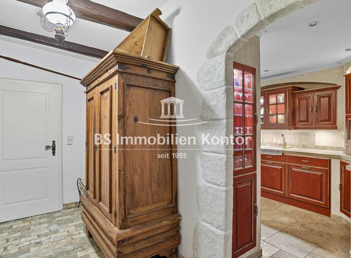Im Herzen der idyllischen Ortschaft Manslagt, einem der charmanten Warfendörfer der Gemeinde Krummhörn, befindet sich dieses liebevoll modernisierte und hochwertig ausgestattete Anwesen. Nur wenige Minuten vom Fischerort Greetsiel entfernt, vereint dieses denkmalgeschützte Gebäude aus dem Jahr 1801 historischen Charakter mit modernem Wohnkomfort eine seltene Gelegenheit für Menschen, die das Besondere suchen. Das Anwesen beeindruckt durch seinen unverwechselbaren Charme, geprägt von liebevoll restaurierten Details und hochwertiger Ausstattung. Auf einer Gesamtfläche von ca. 270 qm bietet das Haus vielfältige Nutzungsmöglichkeiten, ob als großzügiges Eigenheim mit Gästeapartments, zur touristischen Vermietung oder für eine Kombination aus Wohnen und Arbeiten. Im Erdgeschoss befindet sich die großzügige Hauptwohnung, die mit einem offenen Wohn- und Essbereich, mediterranem Flair und einer maßgefertigten Design-Einbauküche überzeugt. Hochwertige Materialien wie Travertin-Fliesen, edles Holz und griechischer Marmor verleihen den Räumen eine warme und exklusive Atmosphäre. Die vollständig neu erstellten Ferienwohnungen im Dachgeschoss (Vermietung seit 2024) sind modern eingerichtet, verfügen über eigene Eingänge und bieten Gästen ein stilvolles Zuhause auf Zeit. Die letzte umfassende Sanierung erfolgte 2022, inklusive neuer Heiztechnik, Zentralheizung und Fußbodenheizung. Insgesamt stehen sechs Stellplätze zur Verfügung. Das Anwesen liegt auf einem ca. 400 qm großen Grundstück und ist Teil des historischen Ortskerns von Manslagt – umgeben von ostfriesischer Marschlandschaft, Ruhe und Weitblick. Das Objekt eignet sich sowohl für private Eigentümer, die stilvolles Wohnen mit Renditepotenzial verbinden möchten, als auch für Investoren auf der Suche nach einem touristischen attraktiven Standort an der Nordseeküste.