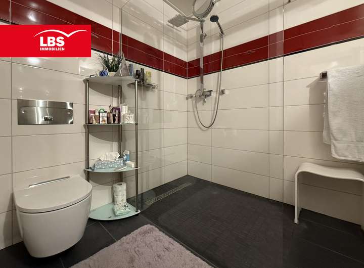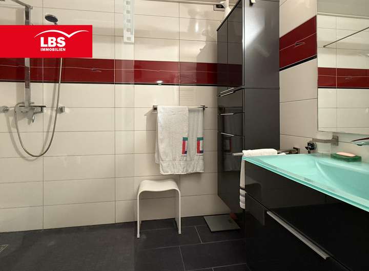 - Badezimmer aus 2017 mit begehbarer Dusche, hochwertigen Schränken und Waschtisch