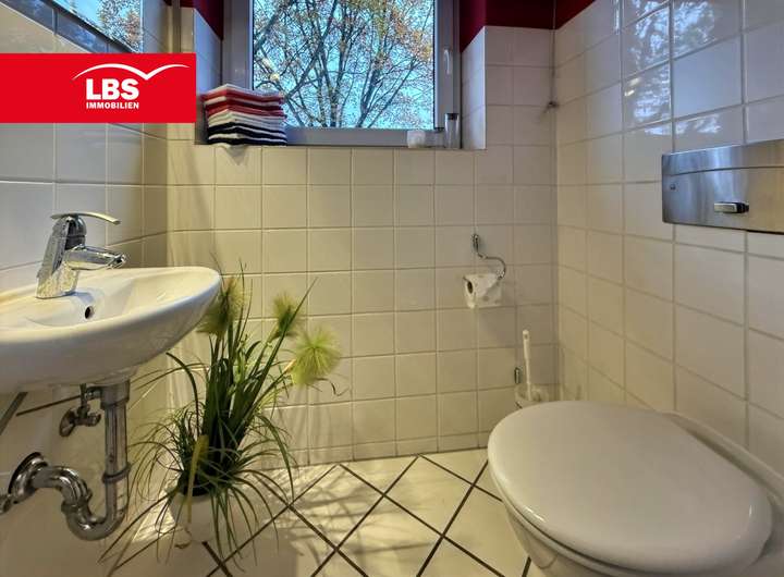 Zur Wohnung gehören ein Kellerraum, ein gemeinschaftlicher Wasch- und Trockenkeller sowie ein Stellplatz vor der Garage. Eine Garage mit elektrischem Torantrieb ist ebenfalls im Kaufpreis enthalten.