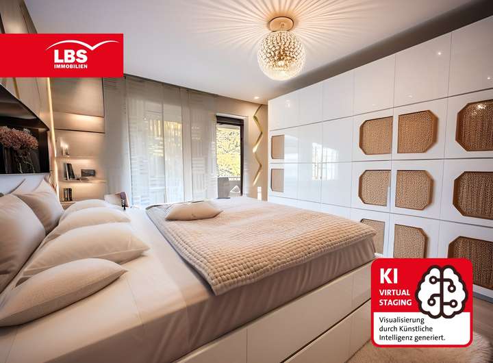 Ein besonderes Highlight ist die große, überdachte Loggia, die sowohl vom Kaminzimmer als auch vom Schlafzimmer aus begehbar ist. Sie bietet einen angenehmen Blick ins Grüne und lädt zum Entspannen im Freien ein. Das Kaminzimmer sorgt in der Übergangszeit und an kühleren Winterabenden für eine behagliche Atmosphäre und ist der perfekte Ort zum Zurückziehen und Wohlfühlen.