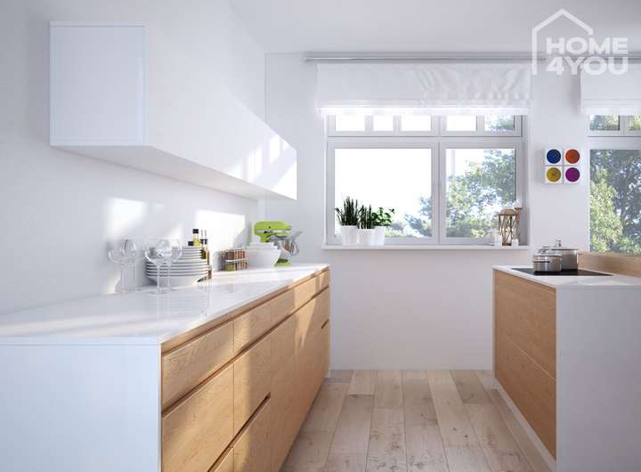 Bei der eigenen Gestaltung der Küche sind Ihnen keine Grenzen vorgegeben, alle Anschlüsse auch für eine Kochinsel sind bereits vorbereitet.