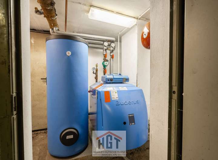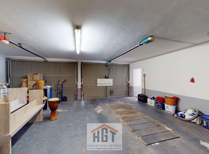 Garage und großzügiger Kellerbereich (u.a. Waschraum, Heizungsraum, Abstellflächen)
