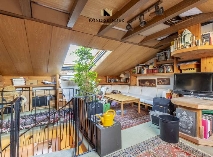 Über eine Wendeltreppe kommen Sie ins offen gestaltete Dachgeschoss, das wohnlich ausgebaut wurde und für ein Homeoffice oder Gästezimmer jederzeit zu nutzen ist. Es ist nicht in der Wohnflächenangabe enthalten; dort stehen Ihnen etwa 30 m² zur Verfügung.
