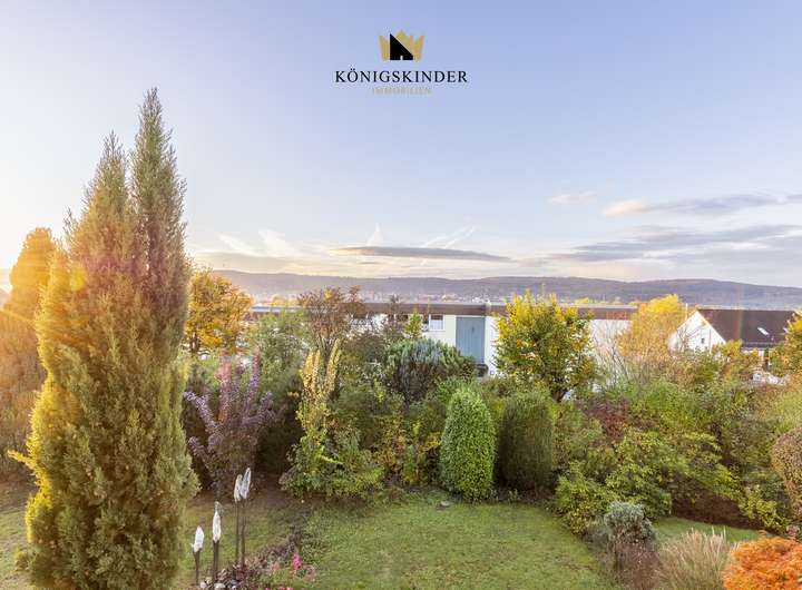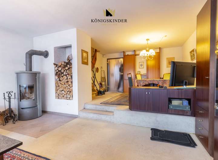 Im Erdgeschoss haben Sie die übliche Raumaufteilung mit Gäste-WC und Küche, einem Essplatz und zwei Stufen tiefer gelegen der großzügige Wohnbereich mit dem Holzofen und direktem Zugang zur teilweise überdachten West-Terrasse.
