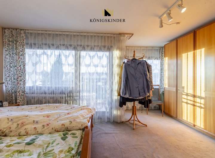 Im Obergeschoss stehen Ihnen drei Zimmer zur Verfügung - zwei nach Osten, das Schlafzimmer mit Balkon nach Westen. Hier ist anzumerken, dass aus ehemals zwei Zimmern das große Schlafzimmer gestaltet wurde - dies ist auch wieder zurückzuführen in zwei kleine Zimmer, sodass Ihnen danach vier Zimmer zur Verfügung stehen.