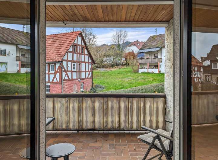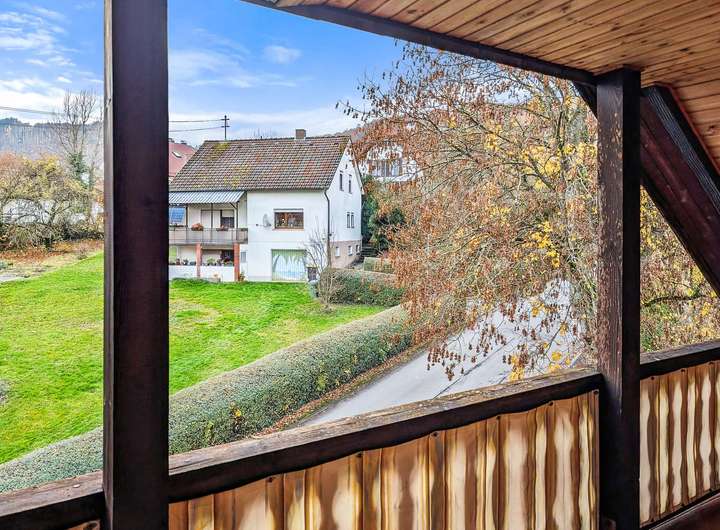 - überdachter Balkon mit schönem Ausblick ins Grüne