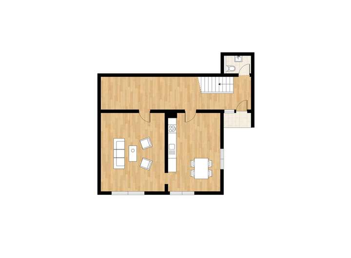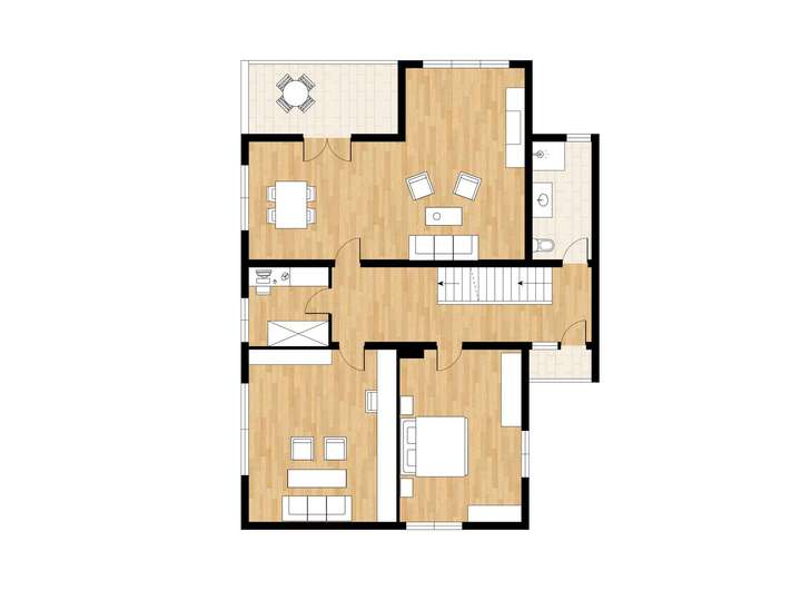 Die Wohnung ist vom Gewerbebetrieb getrennt, verfügt über einen separaten Eingang und erstreckt sich über drei großzügige Wohnetagen. Die Aufteilung ist wie folgt: