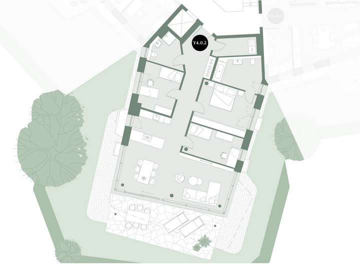 Leben im Park ist ein Ensemble mehrerer Gebäude, die sich harmonisch in den historischen Park einfügen. Sie wurden so gesetzt, dass möglichst viele der jahrhundertealten Bäume erhalten bleiben. Mit ihrer freien Anordnung strukturieren die Häuser auf spielerische Weise den Straßenraum im Norden und bilden zugleich den Auftakt zum landschaftlich geprägten Park. Versetzt angeordnete Balkone und Terrassen, gestaffelte Gebäudetiefen und zurückgesetzte Penthouse-Terrassen führen zu einer feinen Gliederung der Baukörper und einer lebendigen Verzahnung mit der Natur. Zwischen den Gebäuden entstehen immer wieder spannende Blickbeziehungen, in den Park führende Wege laden zum Verweilen ein. ...