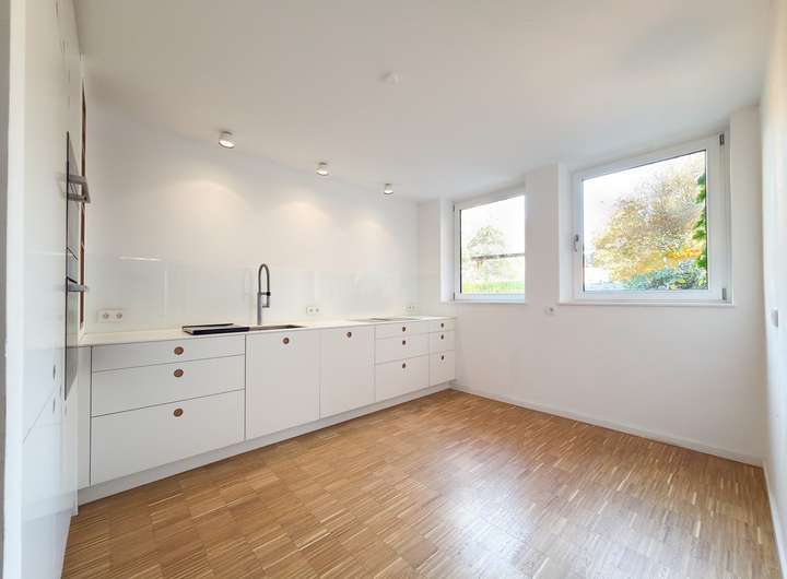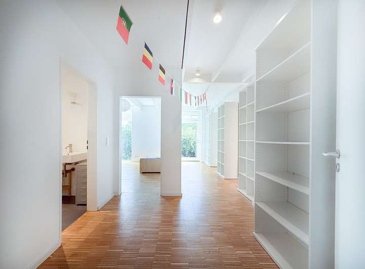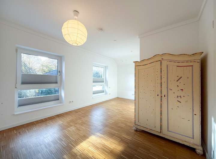 Drei helle, großzügige Zimmer mit bodentiefen Fenstern sorgen für ein außergewöhnliches Raumgefühl und viel Tageslicht. Das modern gestaltete innenliegende Bad überzeugt durch klare Linien und eine zeitgemäße Ausstattung. Als komfortabler Gästebereich, repräsentatives Homeoffice, Atelier, langfristige hochwertige Mietwohnung oder für Mehrgenerationen-Wohnen. Die Einliegerwohnung lässt sich vollständig autark nutzen, ohne den harmonischen Charakter des Hauptbereichs zu beeinträchtigen.