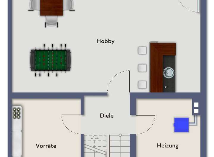 Zusätzlichen Platz finden Sie im vollständig unterkellerten Untergeschoss. Hier stehen mehrere Räume zur Verfügung, die sich als Wasch- und Heizungsbereich, Stauraum oder Hobbykeller nutzen lassen. Hier ist auch die zentrale Gasheizung untergebracht.