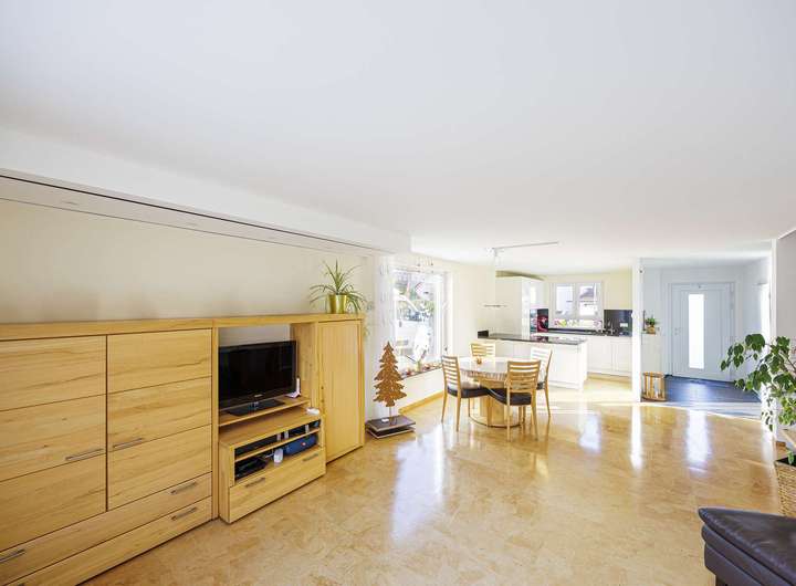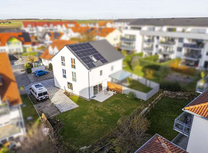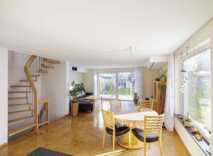 Die gesamte Wohnfläche ist mit einer Fußbodenheizung ausgestattet, die in allen Wohnräumen für behagliche Wärme sorgt. Auf dem Dach befindet sich zudem eine Photovoltaikanlage mit einem zusammenhängenden 9,6‑kWh-Akku im Keller, die nicht nur Energieeffizienz, sondern auch nachhaltiges Wohnen ermöglicht.