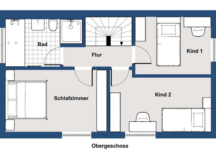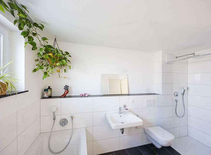 Eine Etage höher liegen die beiden Kinderzimmer, die aktuell zu einem großen Zimmer zusammengeführt wurden, sowie das Schlafzimmer, das ausreichend Platz für Ruhe und Rückzug bietet. Direkt angrenzend befindet sich das hochwertige Tageslichtbadezimmer, das mit Dusche, separater Badewanne, Waschbecken, Toilette und Handtuchheizkörper optimal auf die Bedürfnisse der Familie abgestimmt ist und den perfekten Start in den Tag ermöglicht!