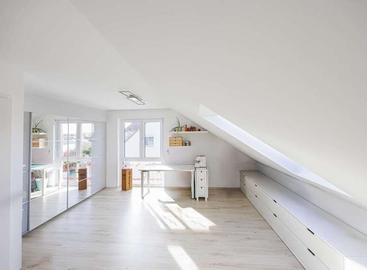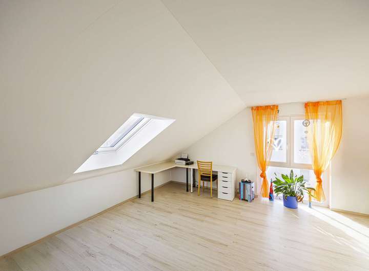 Im Dachgeschoss finden sich zwei weitere Zimmer, die flexibel als Kinder-, Arbeits- oder Gästezimmer genutzt werden können. Aufgrund ihrer Größe sind die Nutzungsmöglichkeiten nahezu unbegrenzt. Der gedämmte Spitzboden bietet zusätzlichen Stauraum für sperrige Gegenstände. Wer noch mehr Platz benötigt, findet im Kellergeschoss einen sehr großen Kellerraum vor, in dem die Haustechnik untergebracht ist. Hier wäre aufgrund der Größe auch eine räumliche Trennung möglich, sodass ein zusätzlicher Hobbyraum entsteht, während weiterhin ausreichend Stauraum für den Hausrat bleibt.