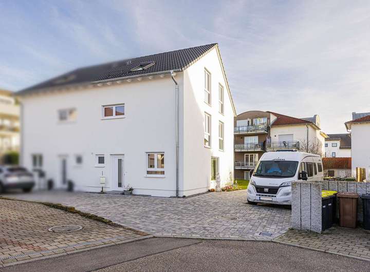 Diese Doppelhaushälfte vereint modernes Wohnen, eine durchdachte Raumaufteilung, hochwertige Ausstattung, einen direkt zugänglichen Garten sowie praktische Stellplatzmöglichkeiten zu einem idealen Zuhause für Familien, die Komfort, Licht und Lebensqualität schätzen.