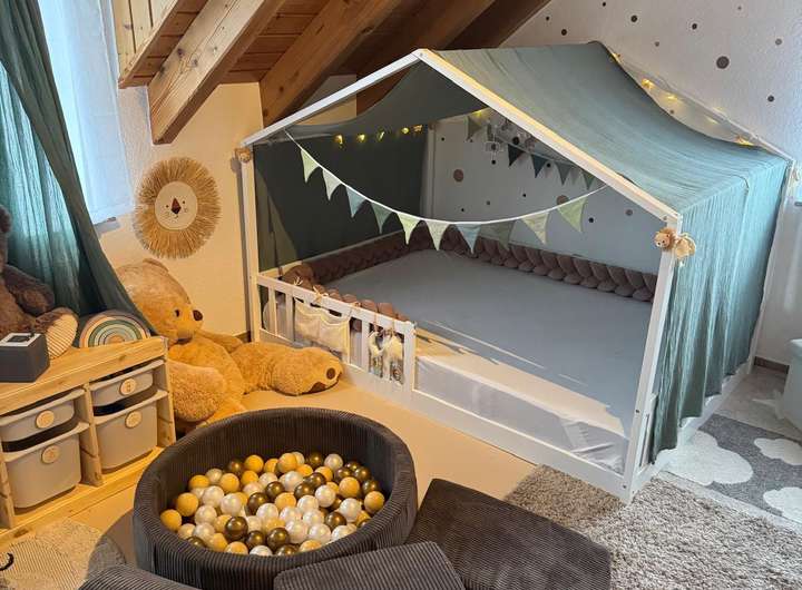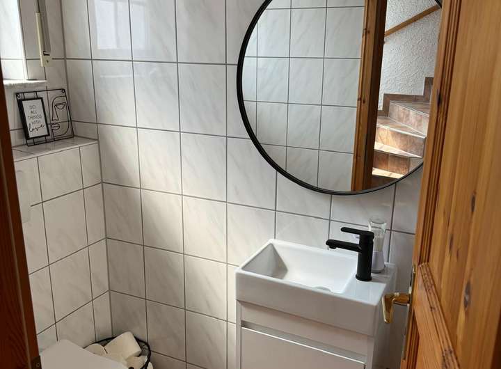 Das Erdgeschoss besteht aus einem Eingangsbereich und Gäste WC (Waschbecken 2024 erneuert) einer schönen Küche im Landhausstil (Einbauküche von 2018, mit einem neuen Kühlschrank und einer neuen Spülmaschine aus 2025 für 800€ abzukaufen) und einem großen, einladenden Wohn-/Essbereich, mit Blick in den Garten. Von hier gelangen Sie über die 35qm große, glasüberdachte Terrasse in den neu angelegten Garten. Dieser ist vollständig eingezäunt und erlaubt z.B. Kinder ungestörtes, sicheres Spielen. Ein modern gepflasterter, im Dunkeln beleuchteter Weg, führt zu einer, für ein Gartenhaus vorbereiteten gepflasterten Fläche.