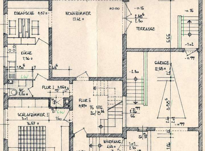 Der Weg von der Garage zum Eingang ist überdacht, weiterhin besteht von der Garage direkter Zugang zur Terrasse und zum Keller des Hauses.