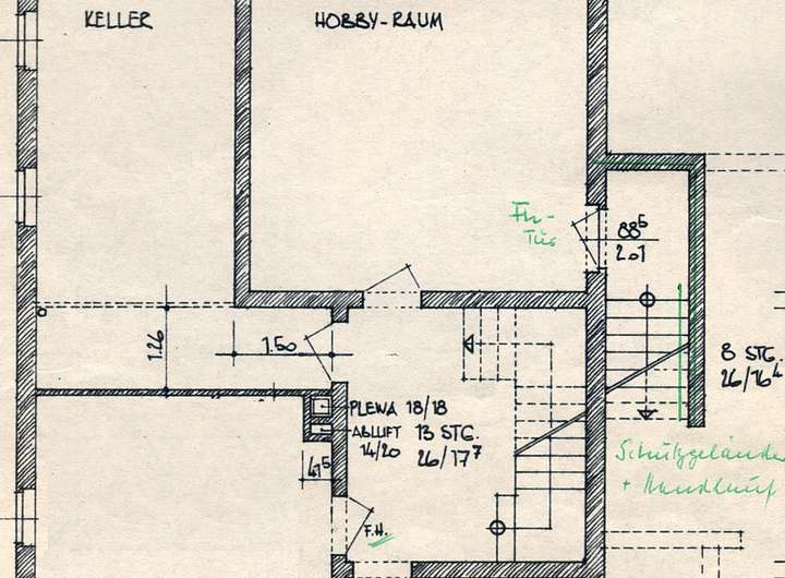Das Haus ist voll unterkellert. Im Keller befindet sich ein gefliester Hauswirtschaftsraum mit Gasbrennwerttherme (Inbetriebnahme 2011), Sauna, Dusche und Toilette, ein großer Partykeller mit Fenstern zum Garten und weitere Räume.