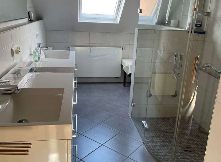 Im Obergeschoss befindet sich ein hochwertiges Schlafzimmer mit Wintergarten, ein hochwertiges Bad, ein weiteres Zimmer und ein kleines Büro. Der Spitzboden ist nicht ausgebaut.