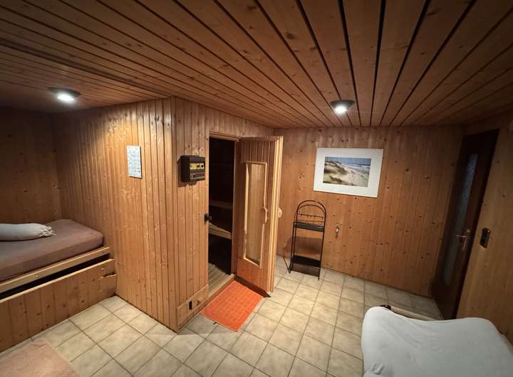 Über eine Treppe gelangt man in den Souterrain-Bereich, Partyraum mit Kamin, eine Sauna, /Fitnessraum mit Dusche sowie ein Gäste-WC. Dort befinden sich zudem der Hauswirtschaftsraum und eine zweite, voll ausgestattete Einbauküche.