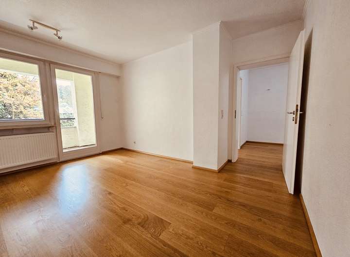 • Zwei helle Schlafzimmer im Obergeschoss – beide mit Parkettboden und Zutritt zu einem Balkon mit Blick ins Grüne.