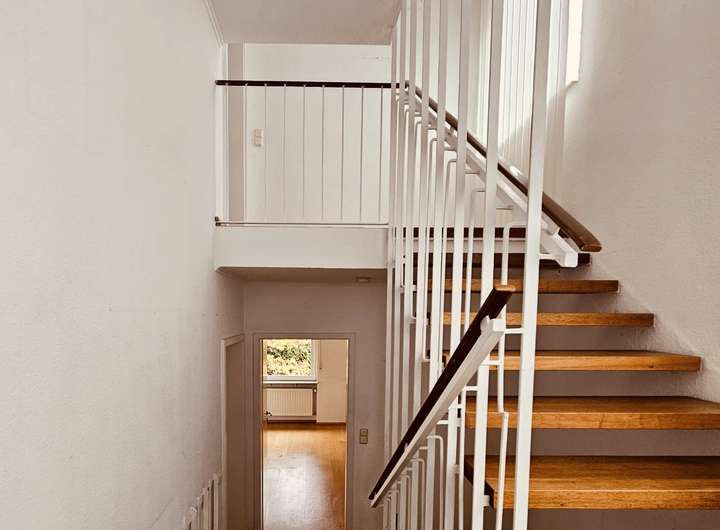 Diese helle und charmante Split-Level-Doppelhaushälfte überzeugt durch eine außergewöhnliche Architektur mit versetzten Ebenen, kurzen Wegen und einem besonders offenen Raumgefühl. Die durchgängige Holztreppe verbindet alle Ebenen harmonisch miteinander und verleiht dem Haus seinen warmen, wohnlichen Charakter.