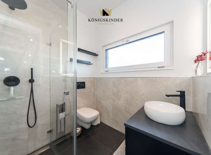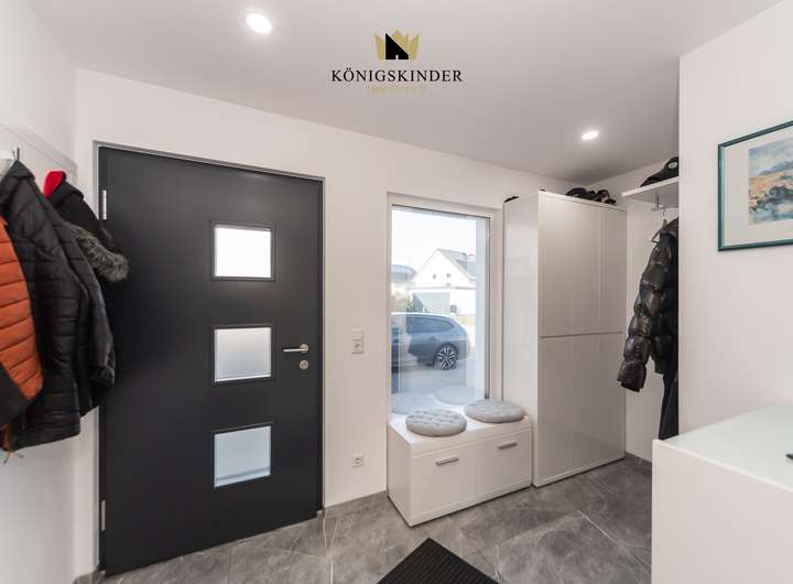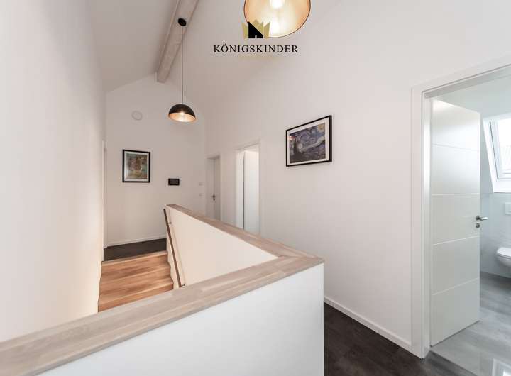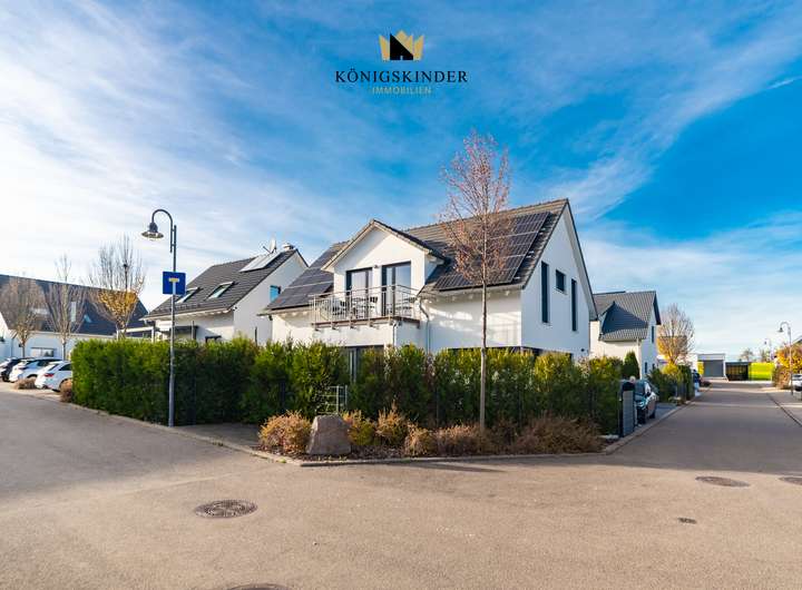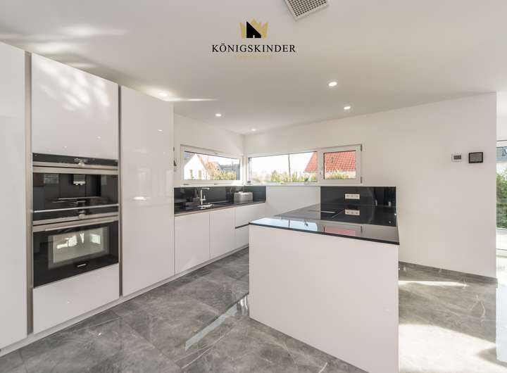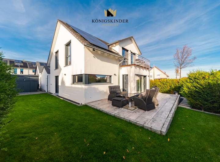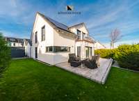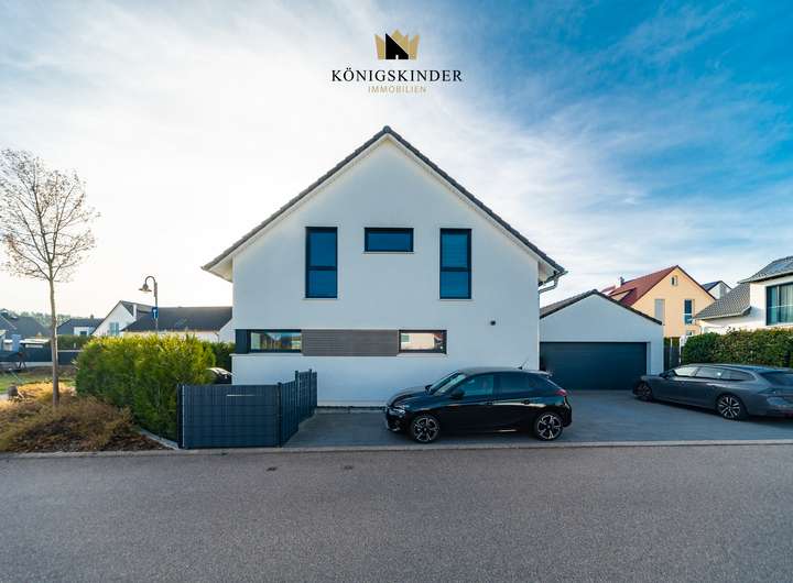 Das Haus verfügt über drei Bäder und eine hochwertige, offene Einbauküche, die Funktionalität und Stil vereinen. Eine großzügige Doppelgarage sowie ein separater Stellplatz bieten ausreichend Platz für Fahrzeuge und Abstellbedarf. Zusätzlich sorgt eine Luft-Wärme-Pumpe für effiziente Heizung und Warmwasserbereitung. Insgesamt verbindet das Haus moderne Technik, bauphysikalische Qualität und eine anspruchsvolle Innenraumgestaltung zu einem zeitlosen Wohnkonzept.