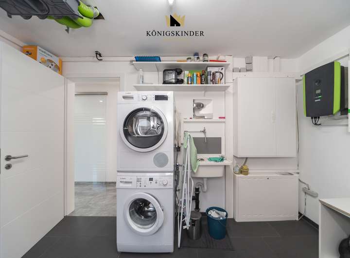 großer Wohn-/Essbereich mit hochwertiger, offener Küche, 1 Nebenzimmer (z.B. Büro), Technikraum, großes Bad, überwiegend Fliesenbelag