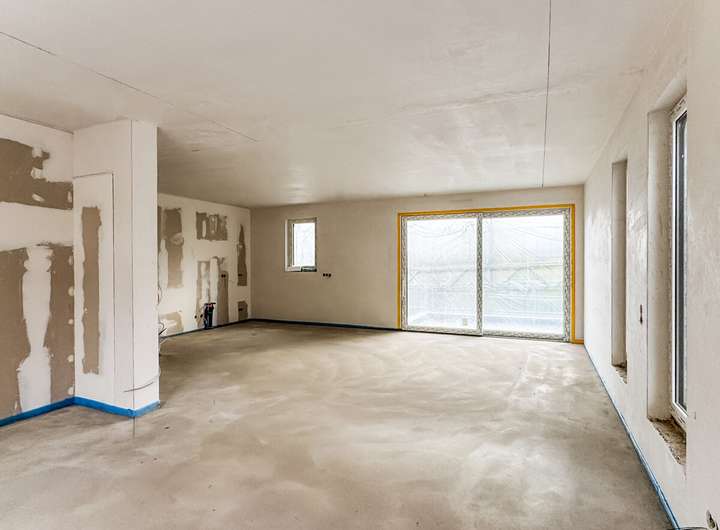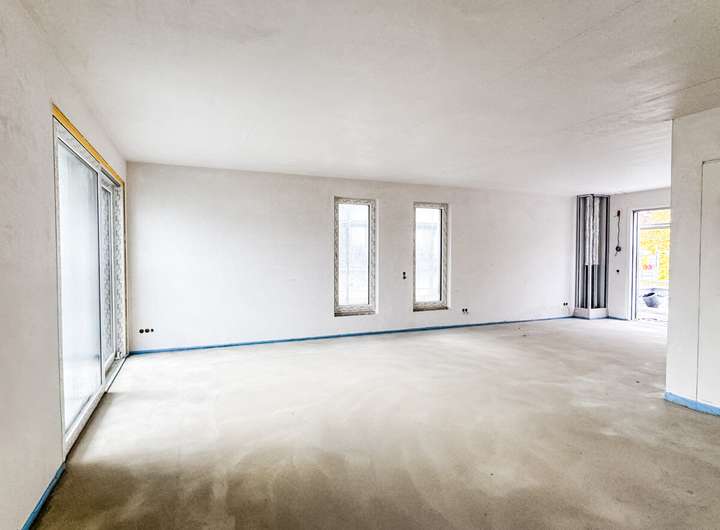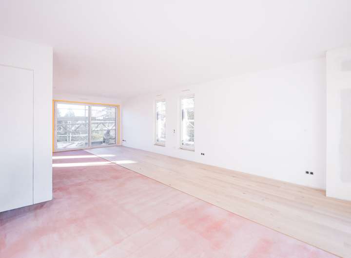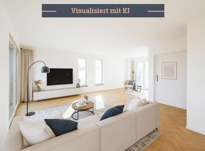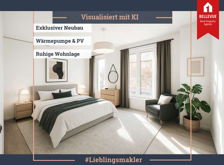 Die lichtdurchfluteten, großzügig geschnittenen Räume beeindrucken durch raumhohe, dreifachverglaste Fenster mit elektrischen Raffstores, eine elegante Flachbauweise und edle Materialien wie hochwertiges Eichenparkett und großformatige Feinsteinzeugfliesen. Eine Fußbodenheizung mit Einzelraumsteuerung schafft in jedem Raum das perfekte Klima – zu jeder Jahreszeit.