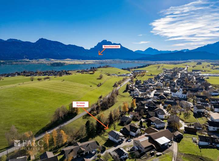 Nur rund fünf Kilometer von Füssen entfernt profitieren Sie von der Nähe zu einer vielseitigen historischen Stadt, während Sie gleichzeitig die Vorzüge eines ruhigen, gut strukturierten Wohnumfelds genießen.