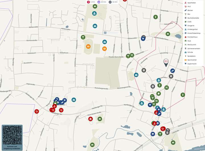 Dank der Nähe zur Hamburger Stadtgrenze ist der Standort ideal für Berufspendler. Über die Bundesstraße 5 sowie die S-Bahn-Station Reinbek (Linie S21) ist die Hamburger Innenstadt in rund 25 Minuten erreichbar. Auch die Autobahn A24 liegt nur wenige Fahrminuten entfernt und bietet eine schnelle Anbindung in Richtung Hamburg und Berlin.