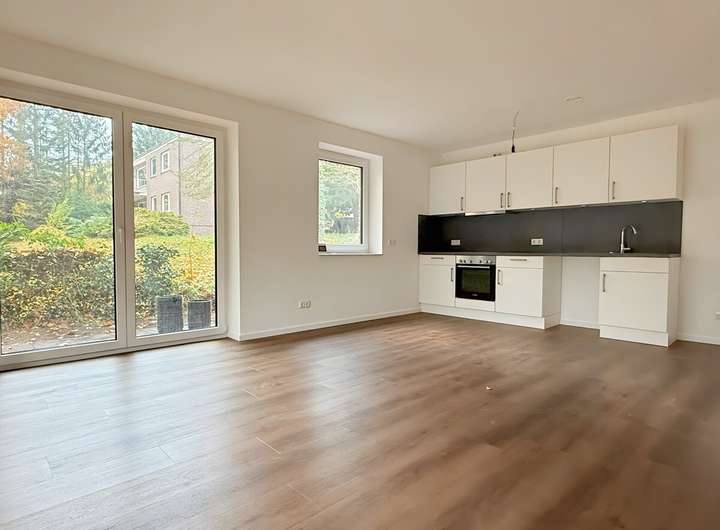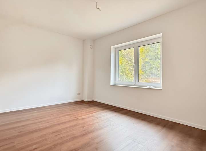 Für ein angenehmes Raumklima sorgen eine energieeffiziente Wärmepumpe, ein Be- und Entlüftungssystem sowie eine Fußbodenheizung, die in jedem Raum individuell reguliert werden kann. Der Vinylboden in Holzoptik verleiht den Räumen eine warme, wohnliche Note.