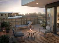 * Die großzügige Dachterrasse bietet Ihnen einen atemberaubenden Panoramablick auf den umliegenden Park.