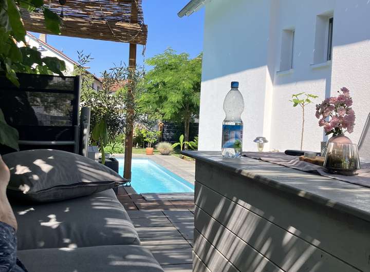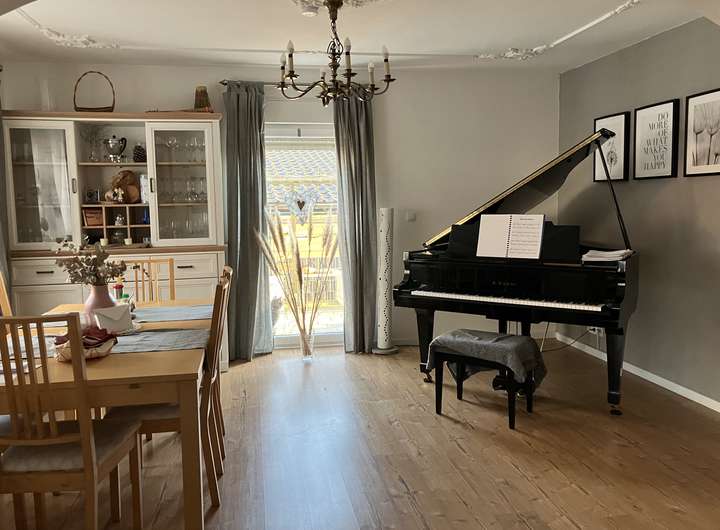 Zur Vermietung steht ein gepflegtes Einfamilienhaus in ruhiger Wohnlage, ideal für Familien oder Paare. Das Anwesen überzeugt durch einen gemütlichen Garten mit fest eingebautem Pool sowie einer Terrasse in Süd-Ausrichtung, die ganztägig Sonne bietet – ideal zum Entspannen, Grillen oder für gesellige Abende.
