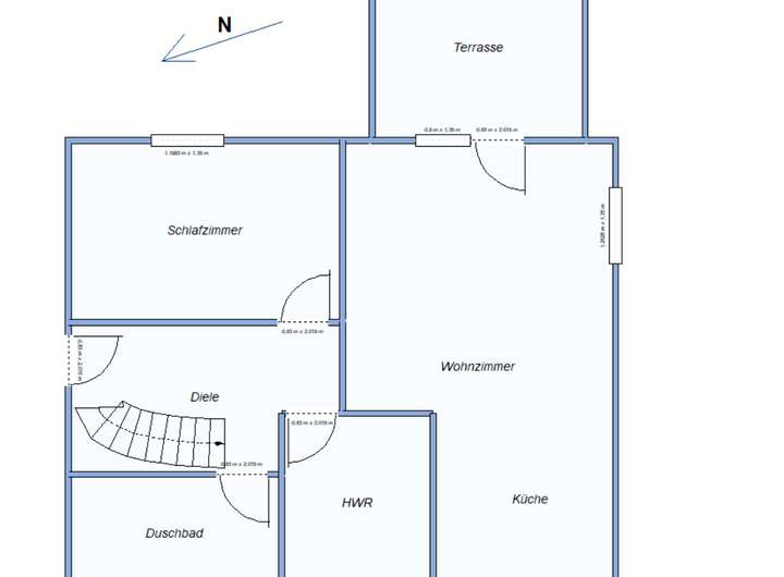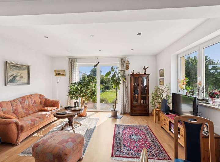 Die Wohnfläche im Erdgeschoss beträgt ca. 64 m² (inkl. halber Terrasse).