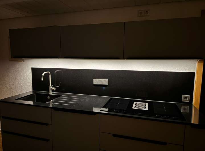 Hochwertige Einbauküche mit Arbeitsplatte aus Naturstein