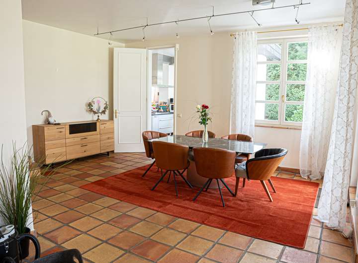Weitere Nutzungsmöglichkeiten ergeben sich durch eine geräumige Doppelgarage sowie eine separate Wohneinheit, die sich ideal für Gäste oder beruflich genutzte Bereiche eignet.